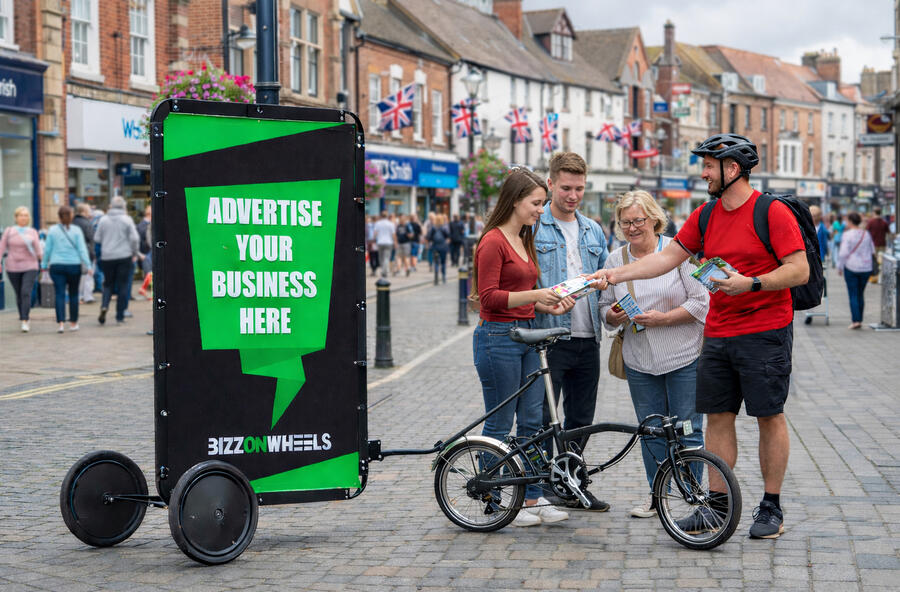 Using an electric Brompton to enhance advertising miles and a Bizz On Wheels advertising trailer in and around Bristol and beyond....